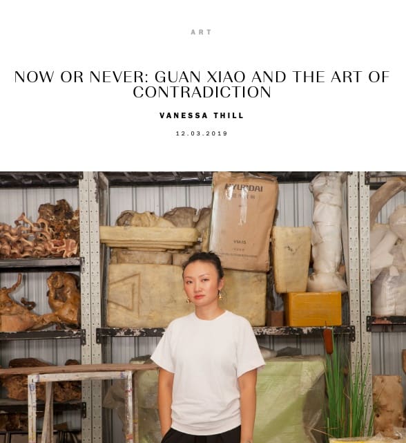 Guan Xiao graduated from the Communication University of China and has exhibited internationally. Her work has been featured at MUDAM (2021); the 34th Bienial de Sao Paulo (2021); Belgrade Biennial (2021); Antenna Space, Shanghai (solo; 2020); Skulpturenpark Cologne (2020); X Museum Triennial (2020); Kunstmuseum Sankt Gallen (2020); Sharjah Art Foundation (2020); Bonner Kunstverein (solo; 2019); Contemporary Art Museum, St. Louis (solo; 2019); Fellbach Triennial, Fellbach (2019); Honolulu Biennial (2019); Migros Museum, Zürich (2019); Anyang Public Art Project, Anyang (2019); Kunsthalle Winterthur (solo; 2018); High Line, New York (2017); the 57th Venice Biennale, Venice (2017); Julia Stoschek Collection, Berlin (2017); M HKA Museum of Contemporary Art, Antwerp (2017); 9th Berlin Biennale, Berlin (2016); Jeu de Paume, Paris (solo; 2016); the K11 Art Foundation, Shanghai (2016, solo); ICA, London (solo; 2016); ZKM, Karlsruhe (2016); Shortlist for Hugo Boss Asia Art Award at Rockbund Art Museum, Shanghai (2015); the 13th Biennale de Lyon: La vie modern, Lyon (2015); Antenna Space, Shanghai (solo; 2015); 2015 Triennial: Surround Audience, New Museum, New York (2015); Daimler Contemporary Berlin (2015); Thyssen-Bornemisza Art Contemporary, Vienna (2015); M HKA Museum, Antwerp (2014); Kraupa-Tuskany Zeidler, Berlin (solo; 2014); 7th Shenzhen Sculpture Biennale, OCT Contemporary Art Terminal, Shenzhen (2012) and National Museum of Contemporary Art, Seoul (2007).