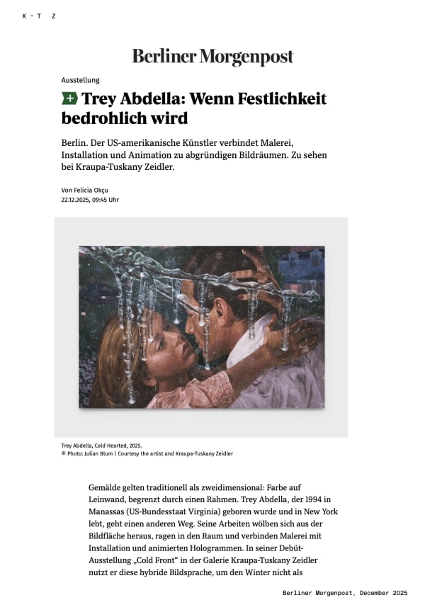 Kraupa-Tuskany Zeidler is pleased to announce Trey Abdella's first solo exhibition with the gallery.
